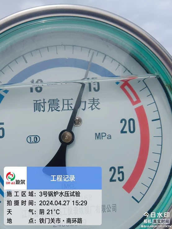 2024年4月27日15時29分,由迪爾集團有限公司第一公司承建的新疆新冀能源循環(huán)經(jīng)濟聯(lián)合化工項目3#爐水壓試驗一次成功。