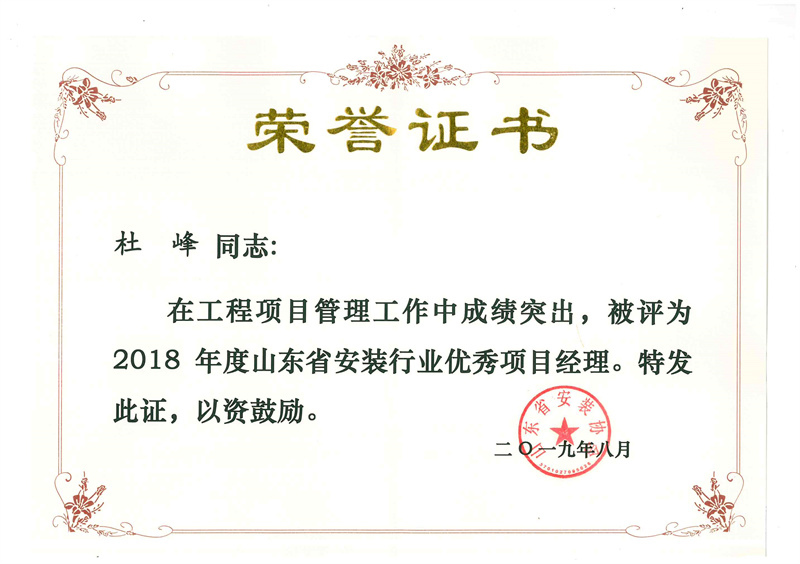 Certificate of honor